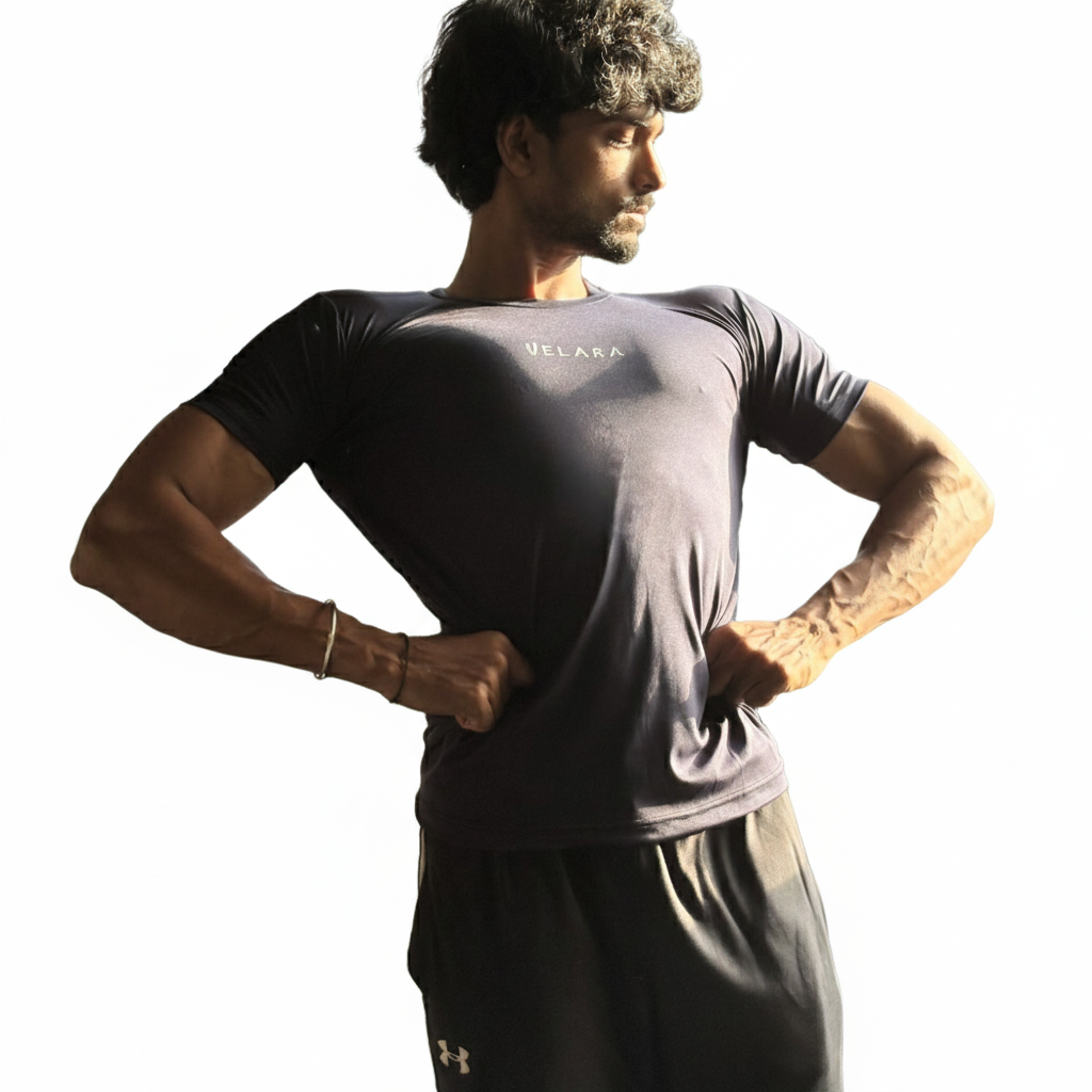 Black Compression Half Sleeves Experience targeted muscle support with these black compression half sleeves, engineered to enhance blood circulation and reduce muscle fatigue during intense workouts or recovery periods. The snug, graduated compression design promotes faster oxygen delivery to working muscles while minimizing soreness and accelerating post-exercise recovery. Ideal for athletes, fitness enthusiasts, and anyone seeking improved performance and endurance. The breathable, moisture-wicking fabric ensures comfort during extended wear, whether training, competing, or rehabilitating from strain. Versatile enough for various sports and activities, these sleeves deliver